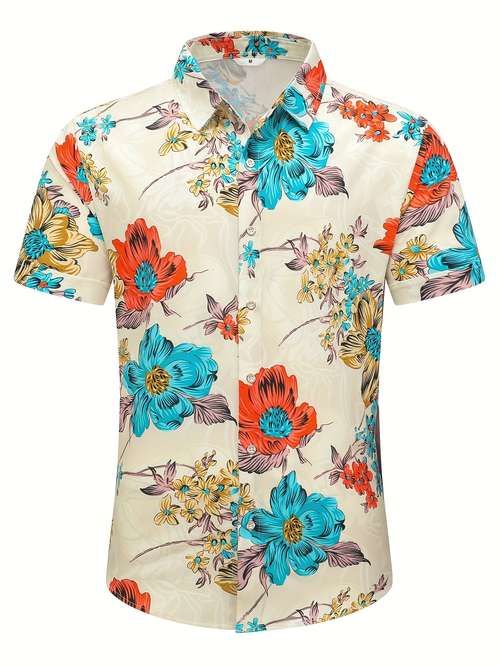 Men’s Floral Half Sleeve Shirt – Tropical Print, Lightweight & Breathable Summer Wear